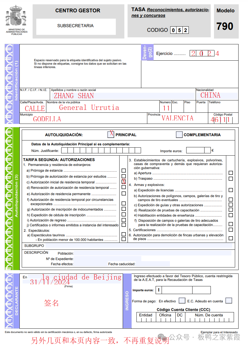 - 续签:主申请人 8倍IPREM,家属+2倍